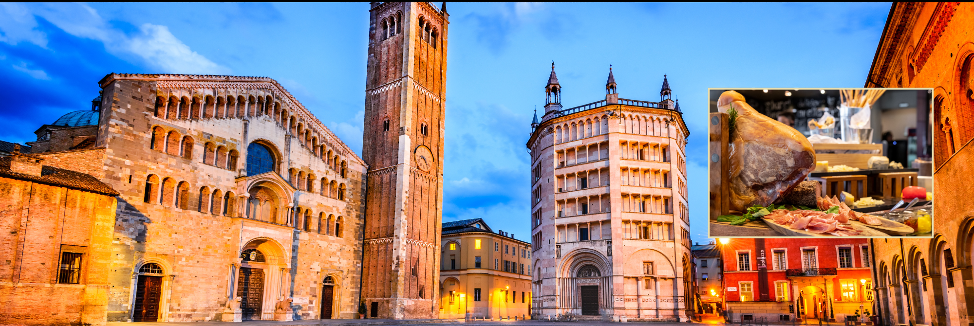 Incontro con la guida per la visita del centro storico ” della piccola Parigi” per la sua eleganza, è abbastanza concentrato, viali curati ed atmosfera raffinata. Piazza Garibaldi con il Palazzo del Governatore ed il Municipio, Piazza Duomo, Duomo visita agli interni, il Battistero capolavoro in stile romanico-gotico, il Palazzo della Pilotta che conserva all’interno il Teatro Farnese vero gioiello in legno del 1618, il Teatro Regio uno dei teatri lirici più importanti d’Italia, ecc.